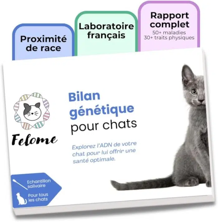 Maintenant que vous connaissez les principales pathologies génétiques qui touchent le Maine Coon, sachez qu’il est aujourd’hui possible de les dépister très facilement grâce à un kit ADN pour chat, accessible aux particuliers. Parmi eux, le test Felome se distingue par sa précision et sa richesse d’analyse.